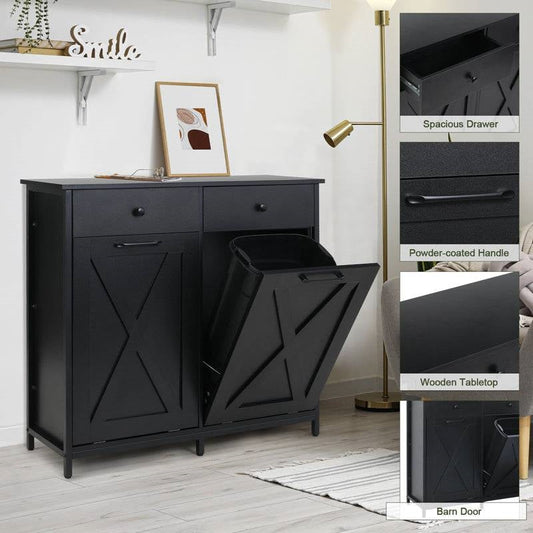 Black Multipurpose 2 Drawer / 2 Tilt Out 10gL Kitchen Laundry Trash/Recycle Storage